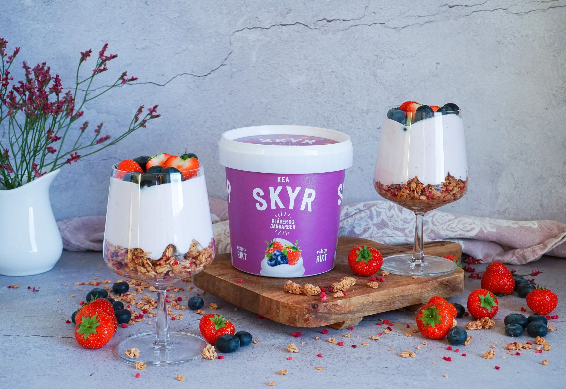 - 500 g KEA skyr með jarðarberjum og bláberjum