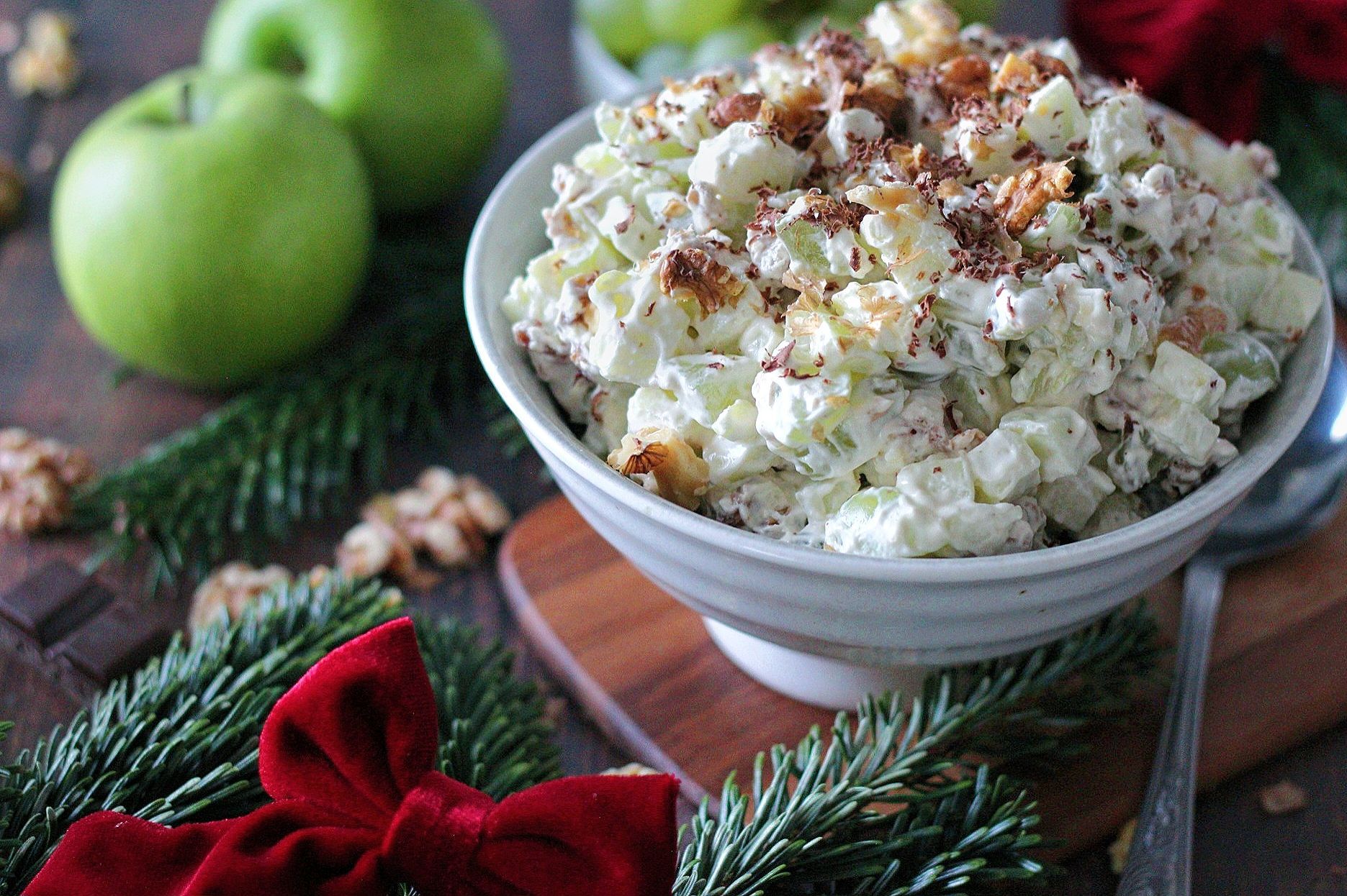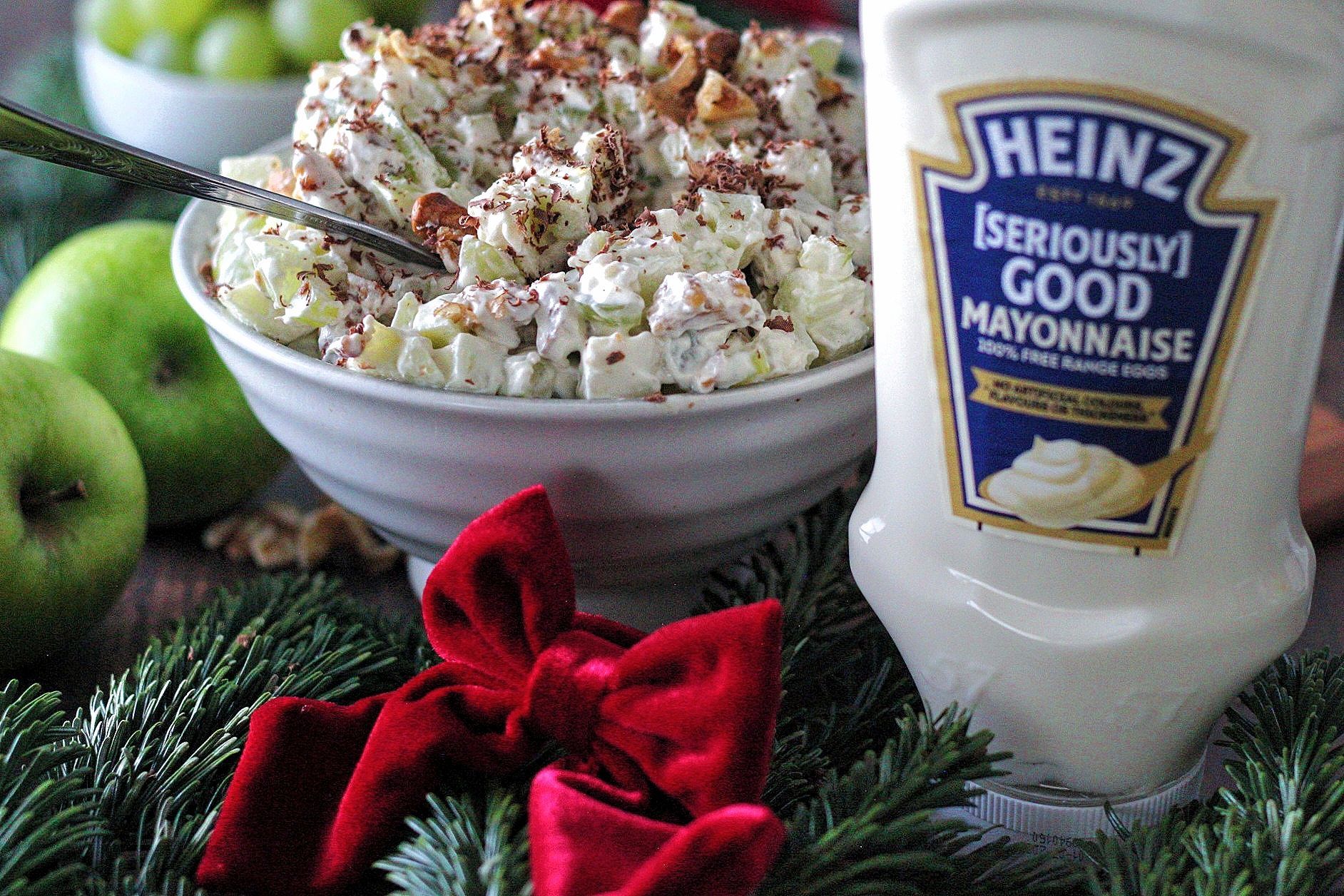 Fyrir marga er algerlega ómissandi að hafa waldorf salat með jólamatnum. Þá skiptir ekki öllu hvort aðalrétturinn er hamborgarhryggur, kalkúnn eða hnetusteik. Stökk, fersk eplin ásamt selleríi, vínberjum og hnetum fara þó sérstaklega vel með þyngri steikum og bragðmiklum aðalréttum og þannig verður til einhver samsetning sem erfitt er að toppa. Það er auðvitað ekki verra að það ótrúlega auðvelt að skella í salatið og það er snjallt að útbúa það daginn áður en á að bera það fram til að spara tíma. Við það verður það meira að segja enn betra!