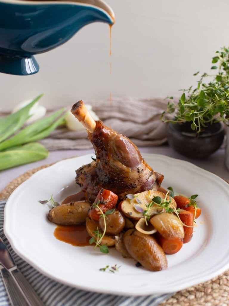 Hægedaðir lambaskankar í rauðvínssósu