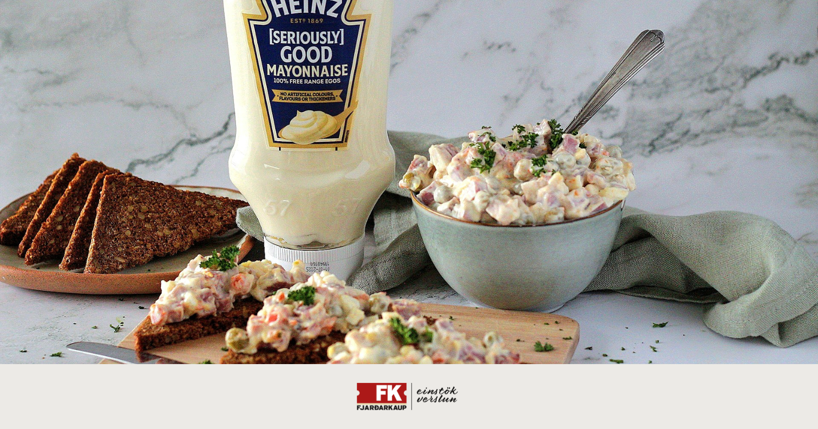 - Byrjið á því að útbúa sósuna. Saxið sýrðu gúrkusneiðarnar og laukinn mjög smátt. Blandið öllum innihaldsefnunum saman í skál og geymið í kæli á meðan salatið er útbúið.